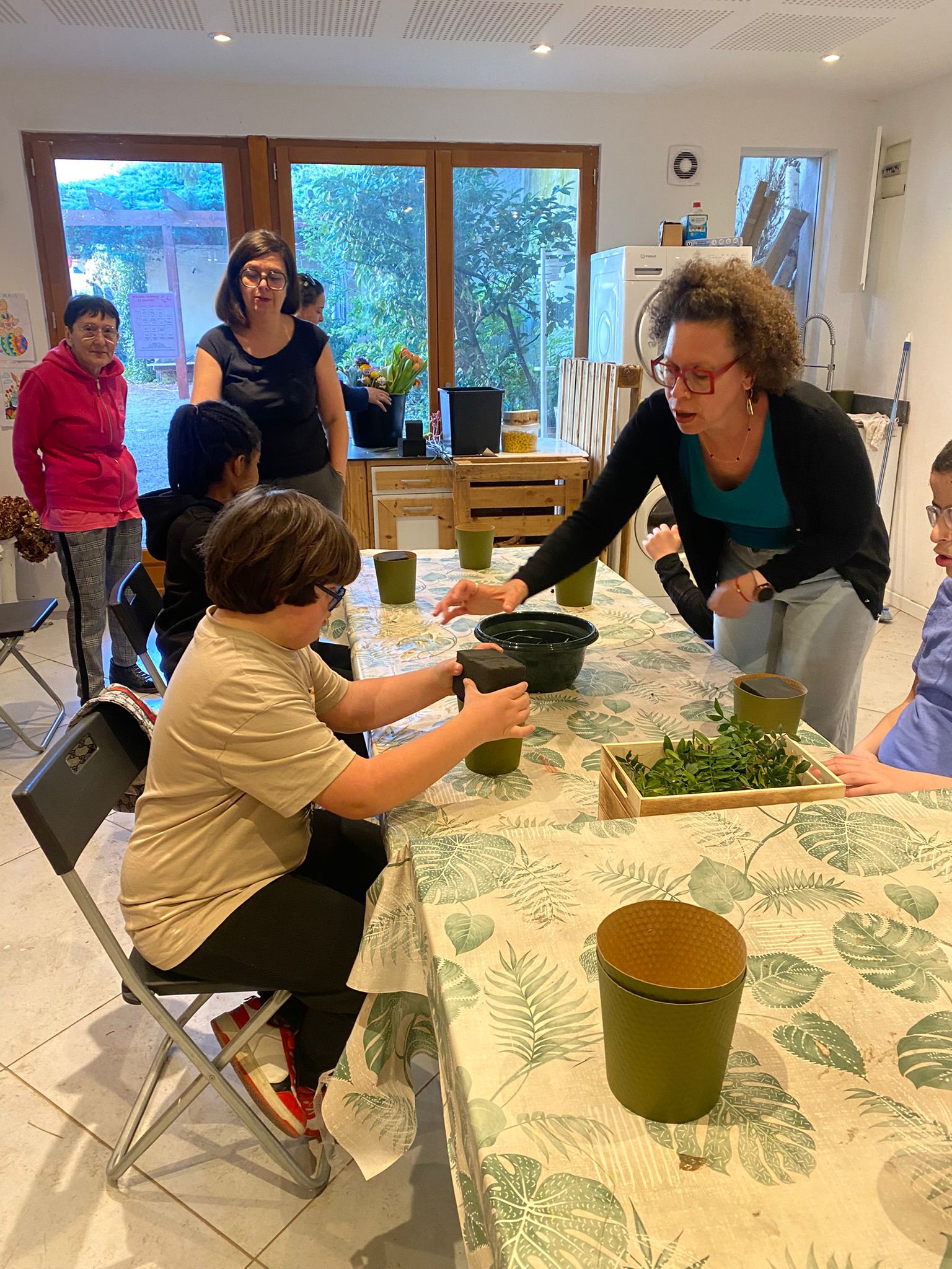 Un air de printemps, 4 jeunes de l’IME la Cotière ont réalisé une belle composition florale grâce à la bienveillante et pétillante Delphine fleuriste de la boutique Couleurs de Fleurs à Montluel et la participation de l’association Line.